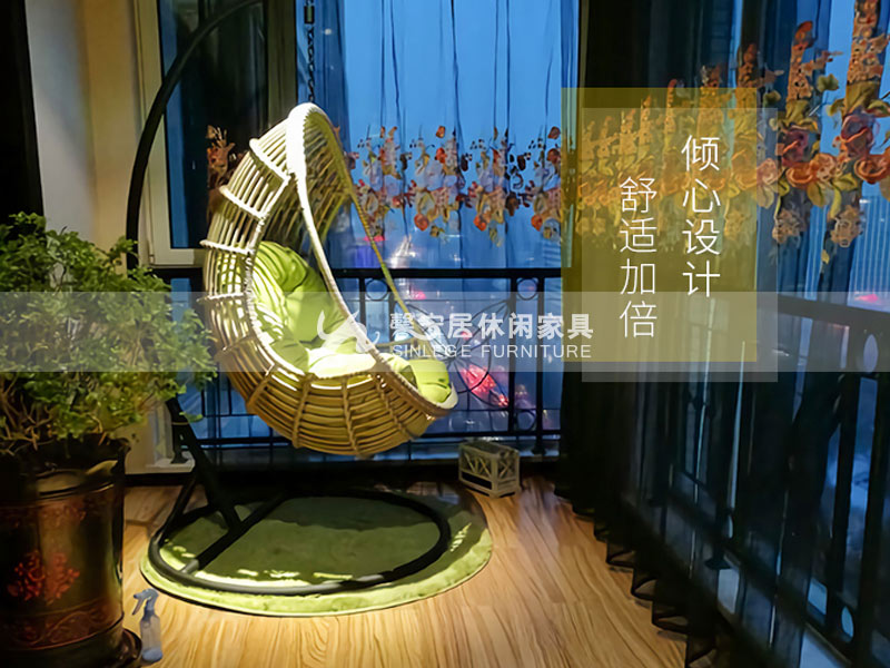 特点:灰色粗藤条编制,拥有独特的气势,吊篮弧形的设计,适合人体的自由旋转,手也可以安全扶着吊篮,不易摔跤,适合场所酒店、宾馆、餐饮外摆,室内装饰,居家、别墅、露台等休闲场所。