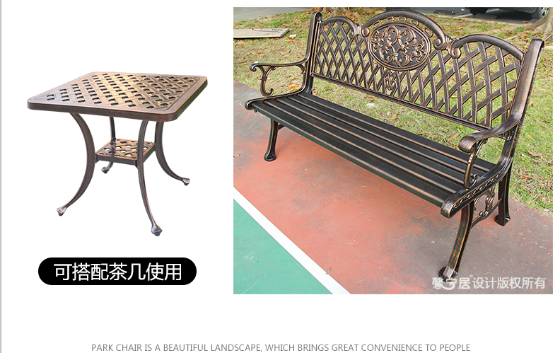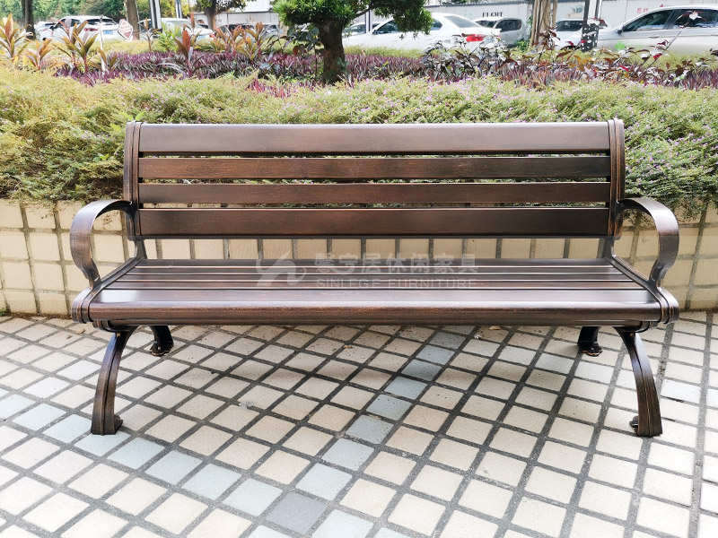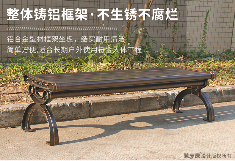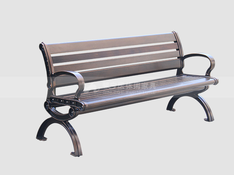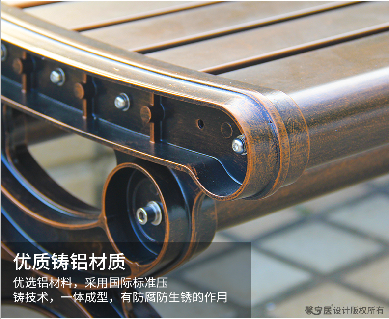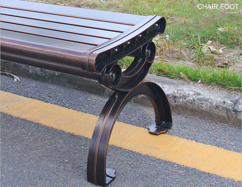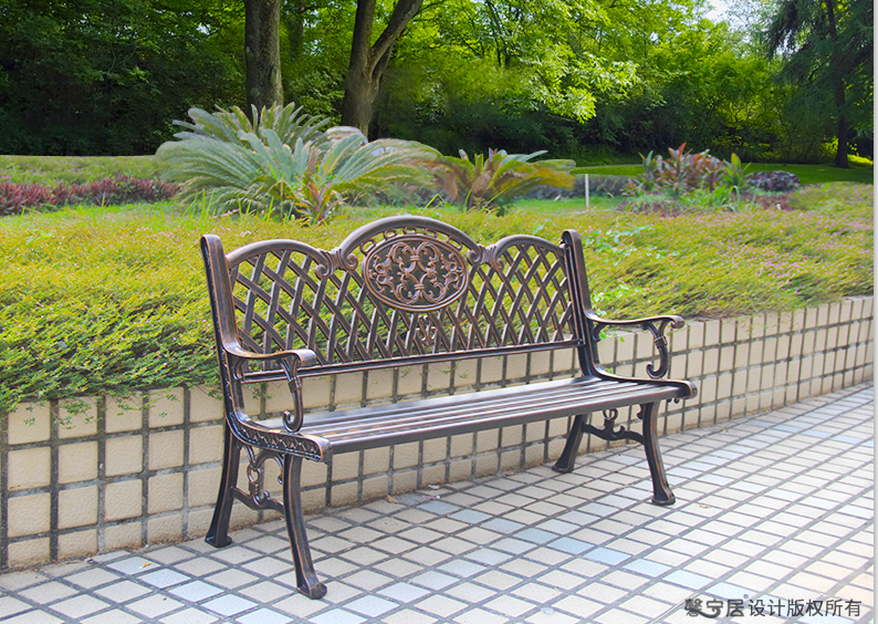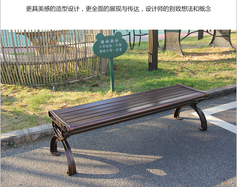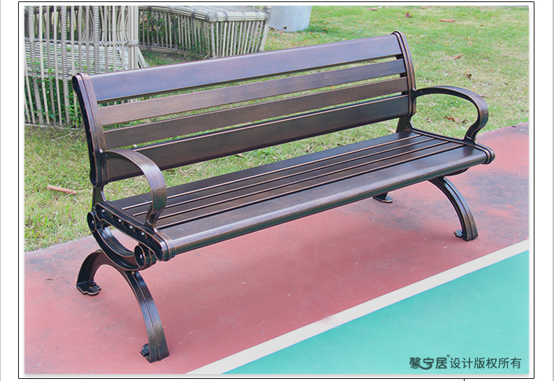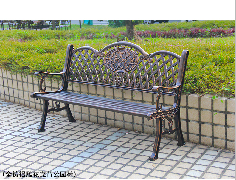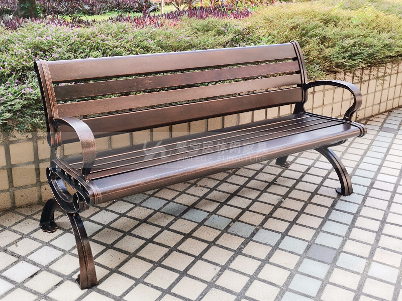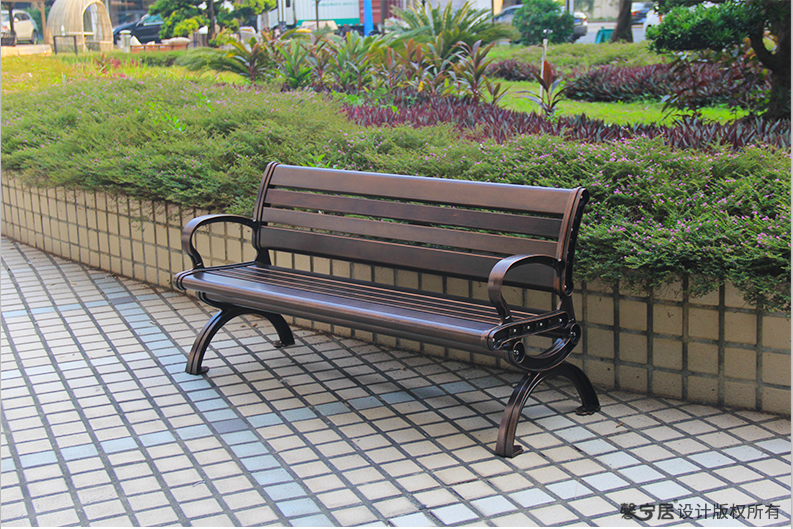 特点:可刷红铜,青铜。图片为咖啡色户外粉效果(扶手压铸,座板背板是铝型材,中间大铜为铁管)