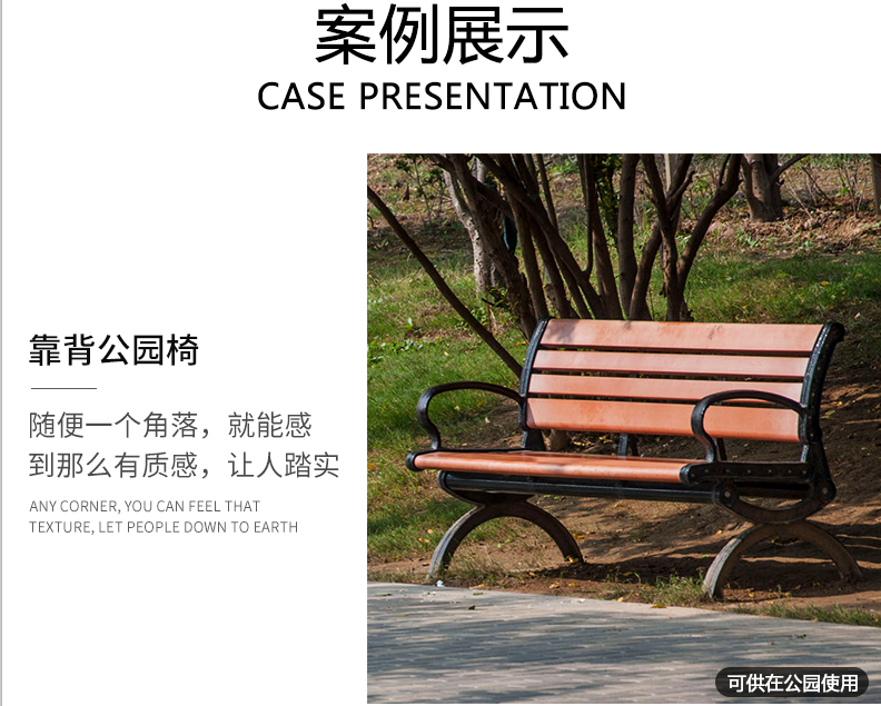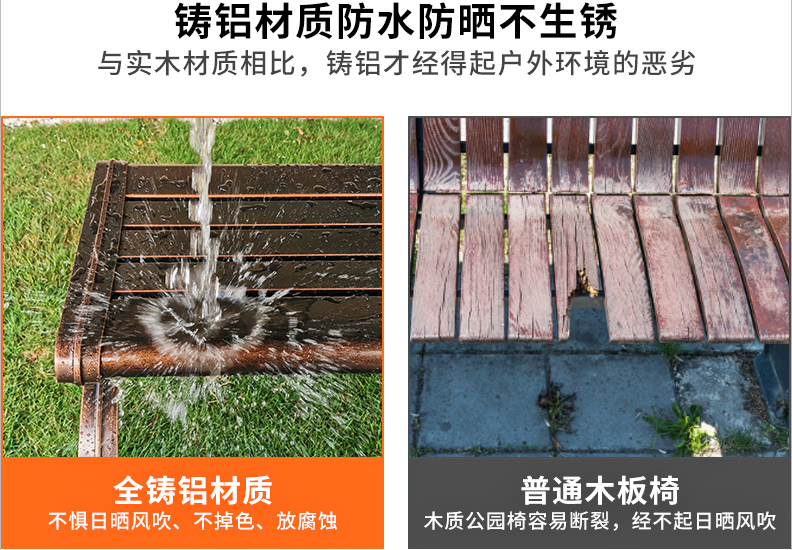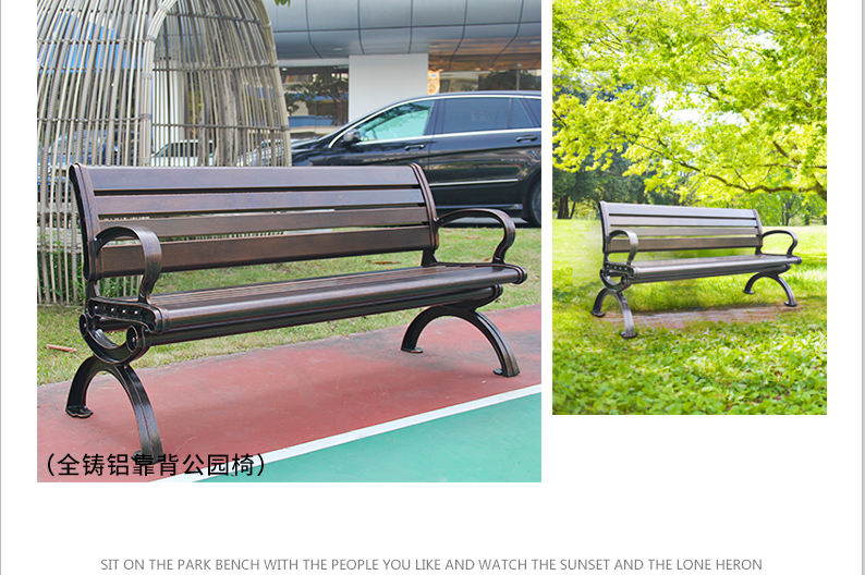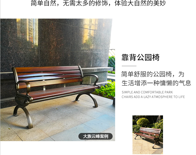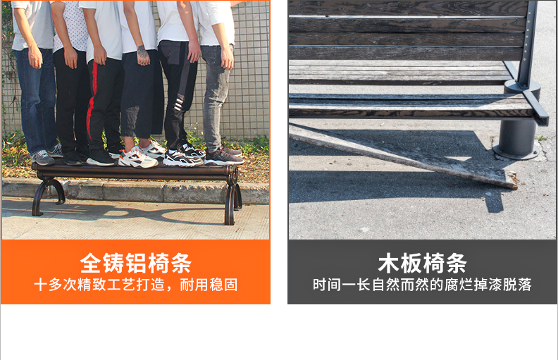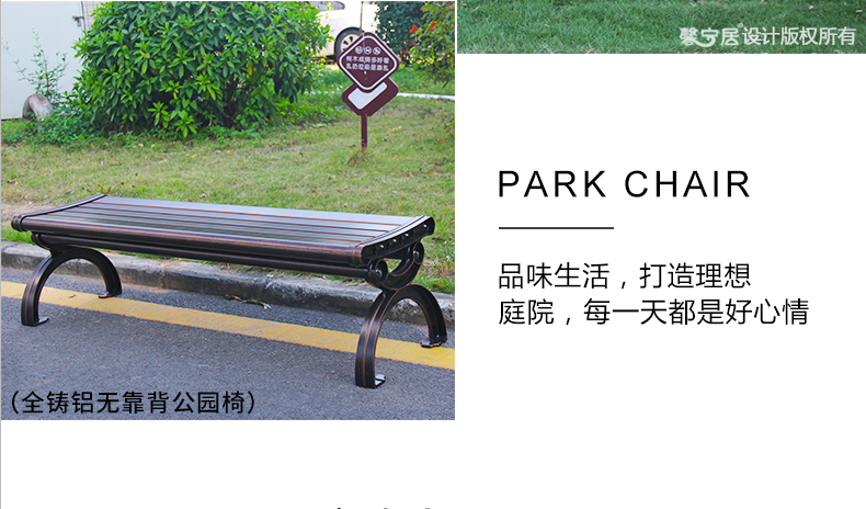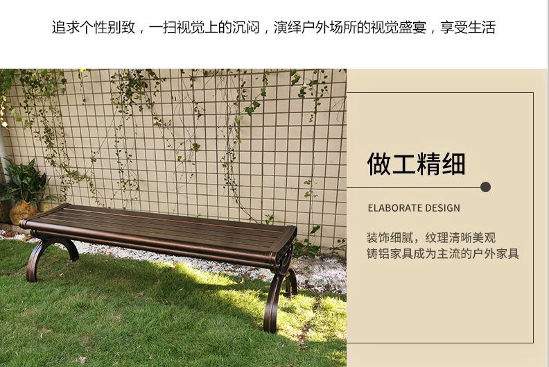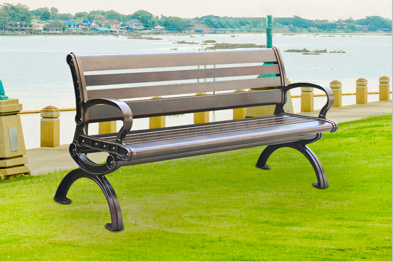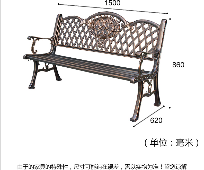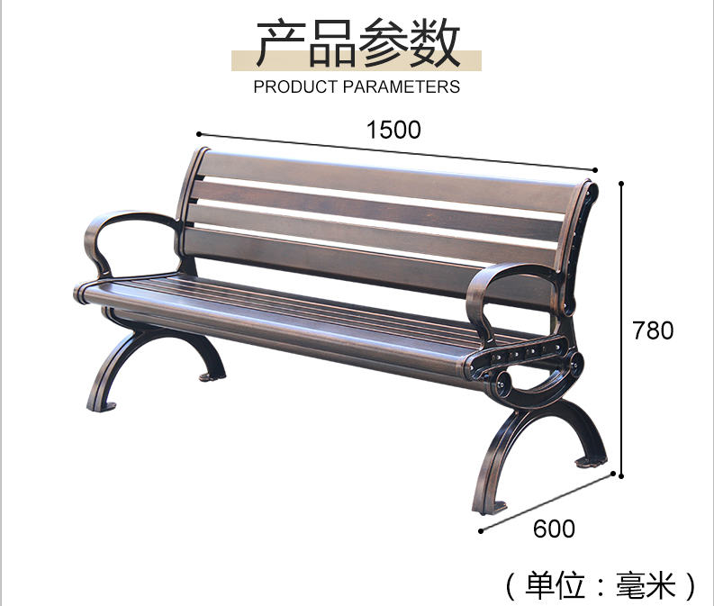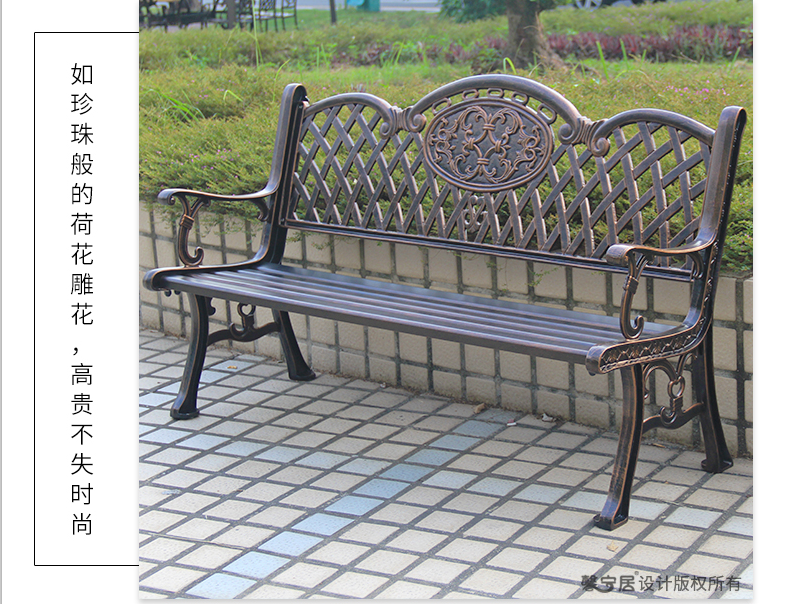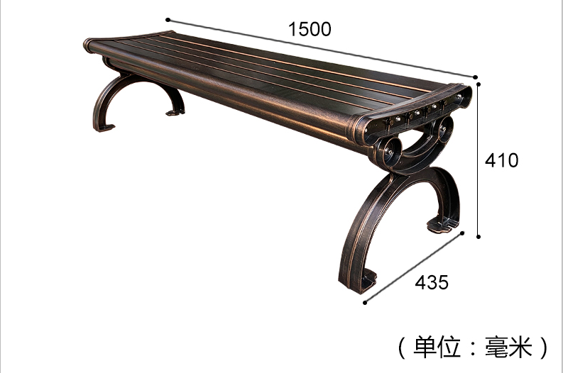 特点:可刷红铜,青铜。图片为咖啡色户外粉效果(扶手压铸,座板背板是铝型材,中间大铜为铁管)