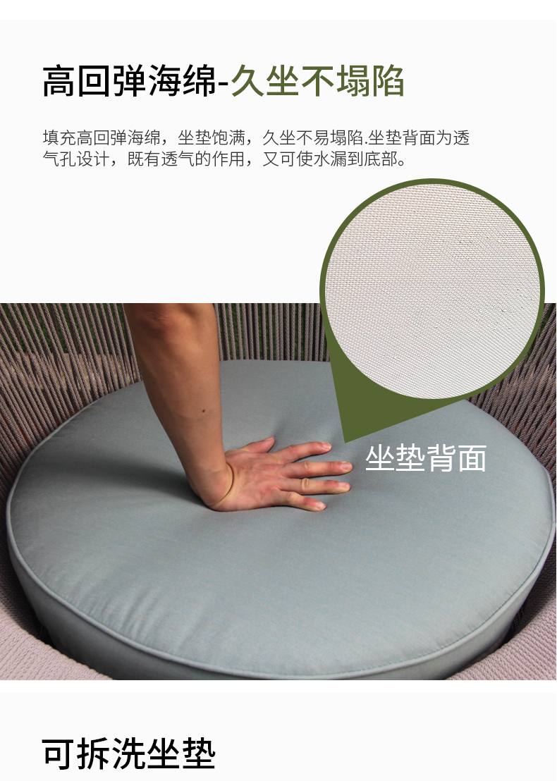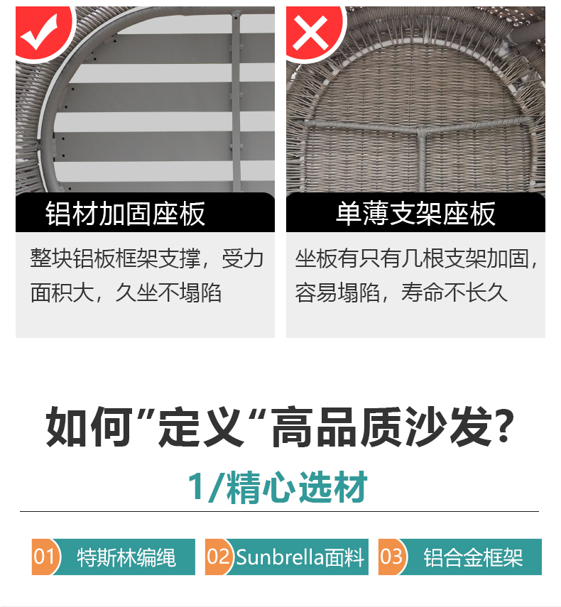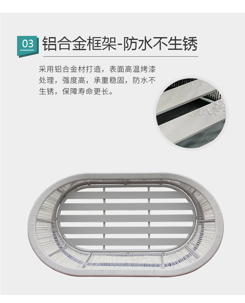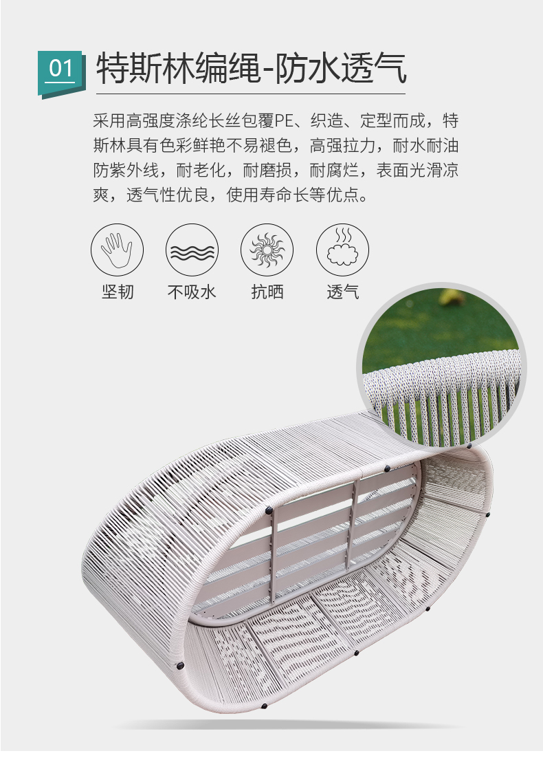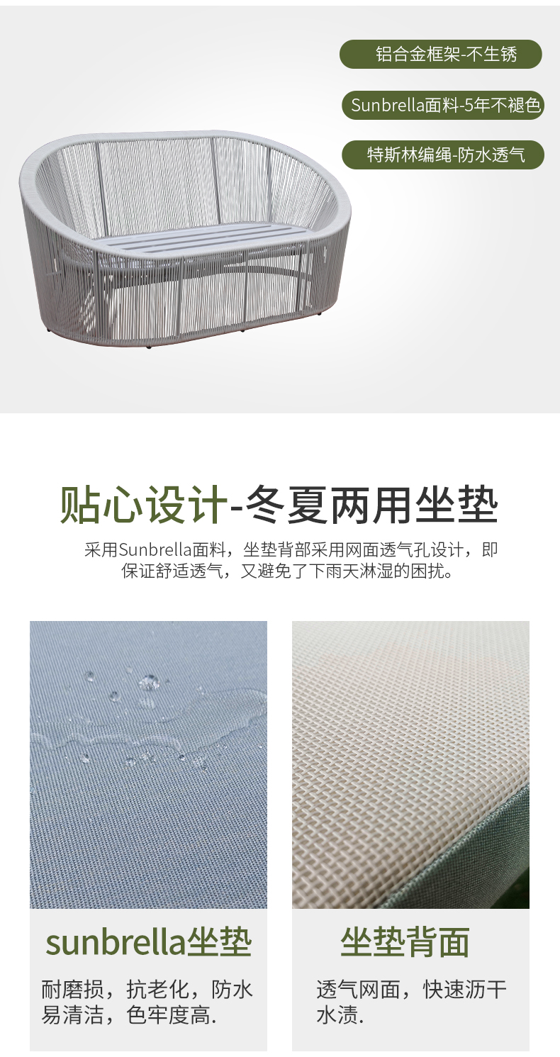 材质:铝合金框架+特斯林绳+进口坐垫软包