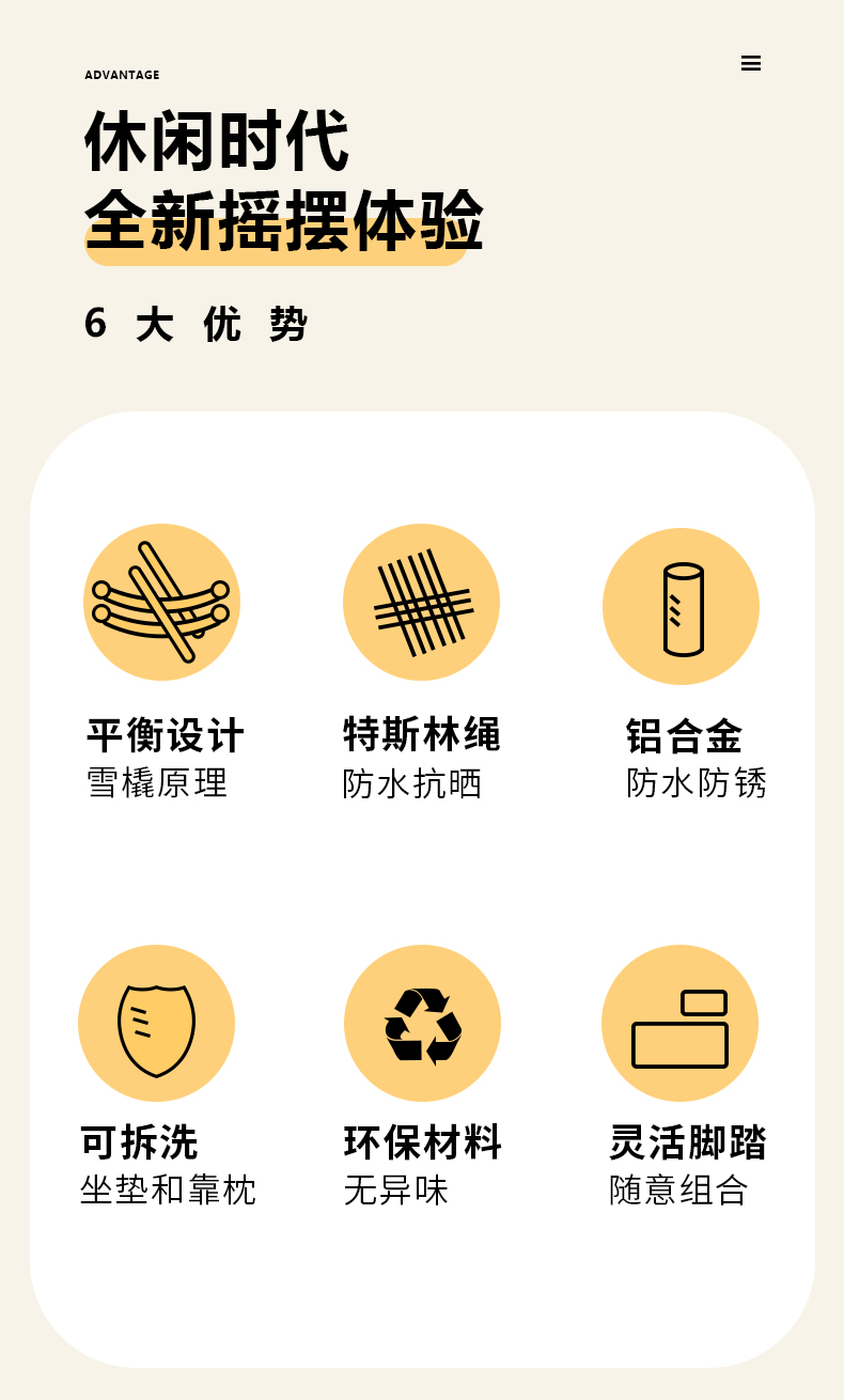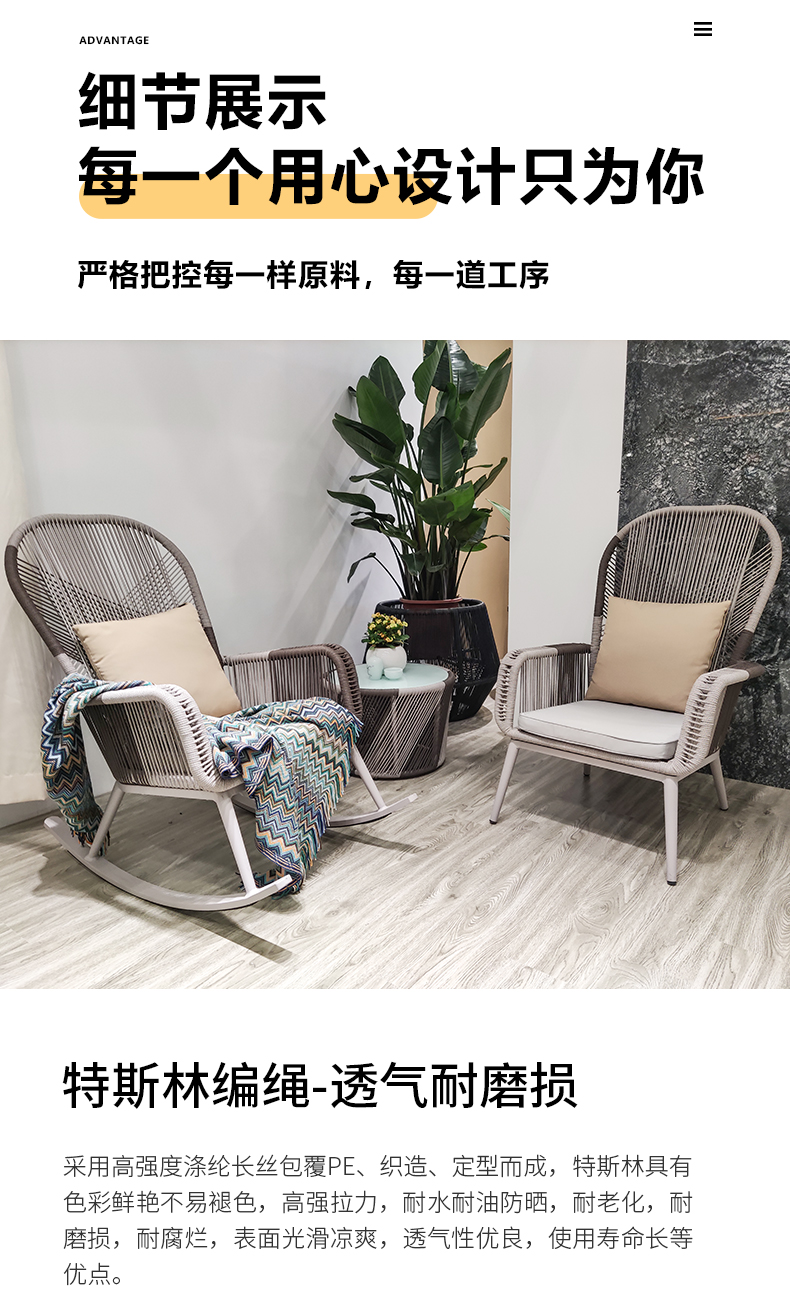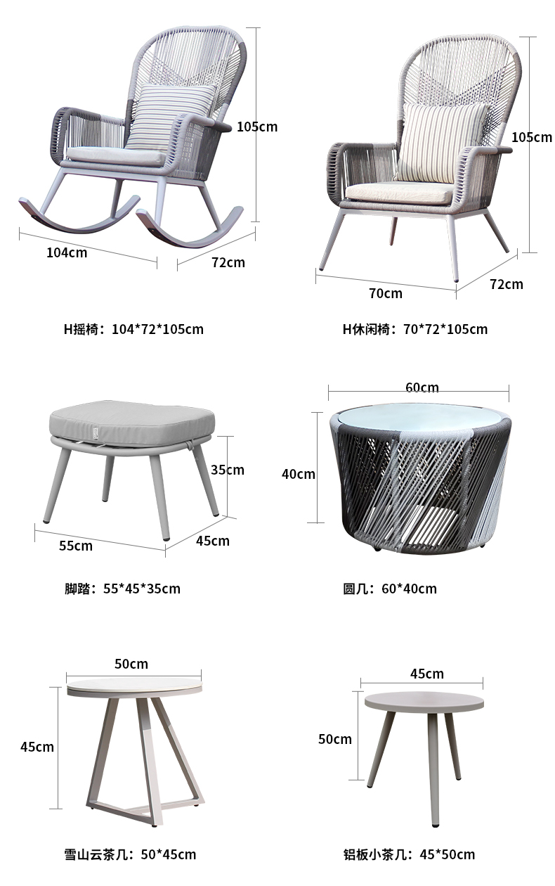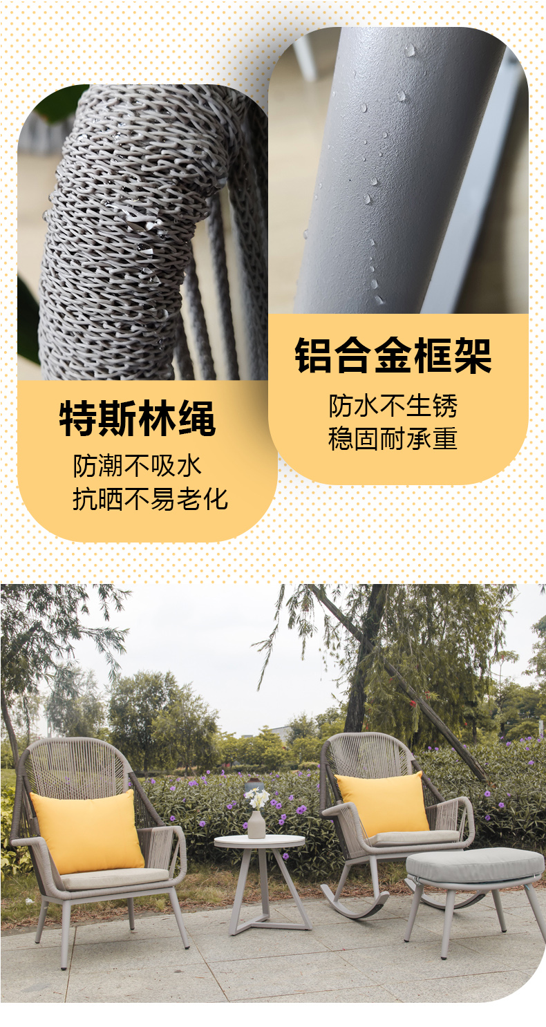 材质:铝合金框架+特斯林绳+国产布坐垫软包