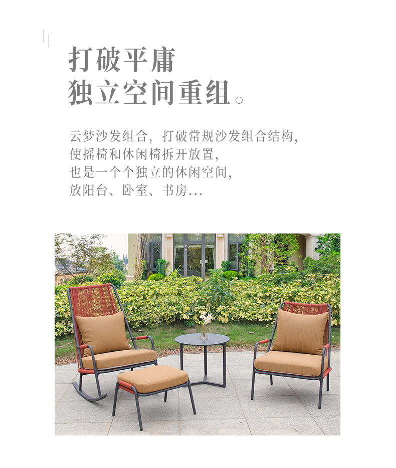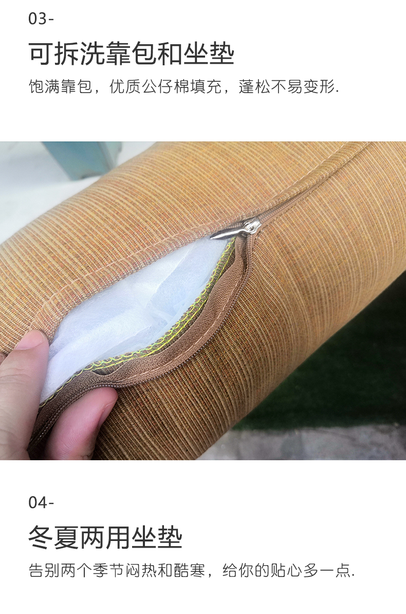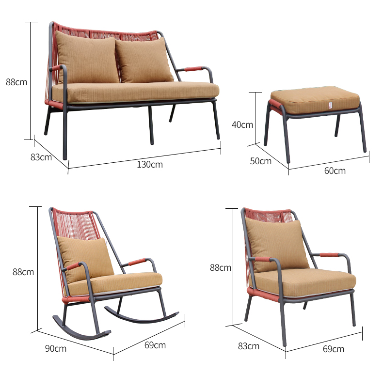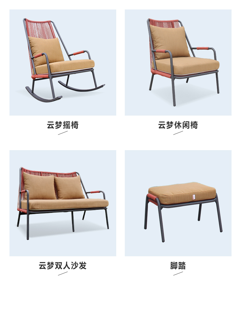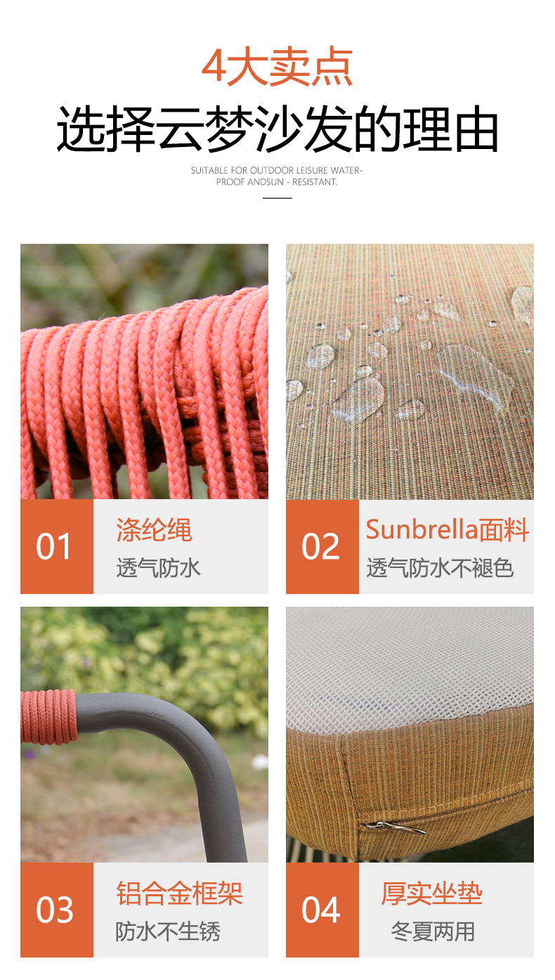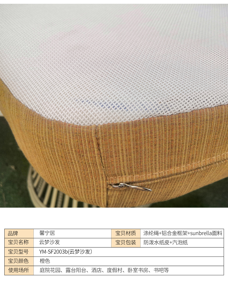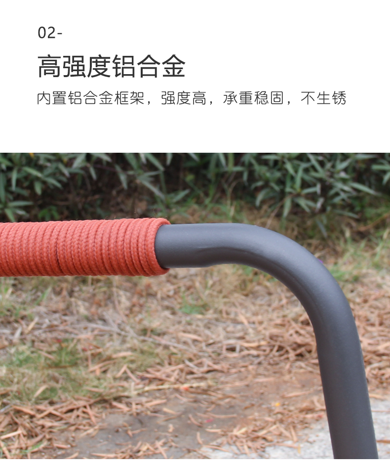 材质:铝合金框架+尼龙绳+金棕进口坐垫+网布