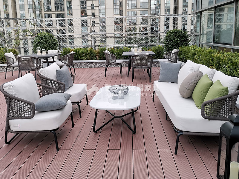 材质:铝合金框架下角+特斯林编织绳+户外布艺软包