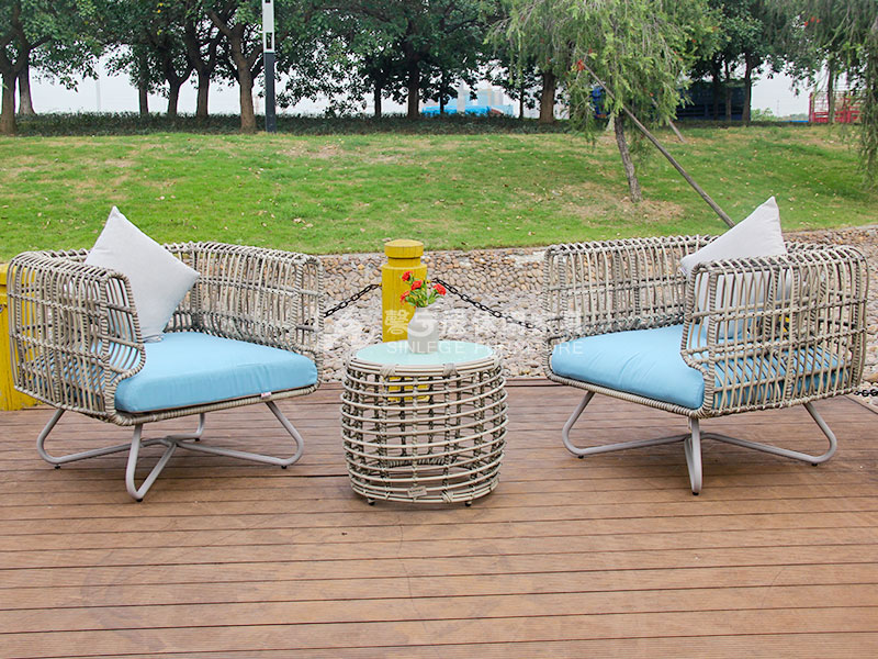 3、藤编家具是铝制框架和PE藤做的。户外喷漆需要特殊的哑光粉处理来加强防晒。