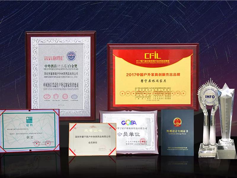 中国户外休闲家具市场发展潜力巨大,馨宁居在户外休闲家具领域,踏出成功一步,打造了有影响力且具有代表性的馨宁居品牌,且先后获得“最受欢迎酒店家具品牌奖”“中外酒店白金奖”中外酒店(十二届)最佳户外定制家具供应商【白金奖】等奖项