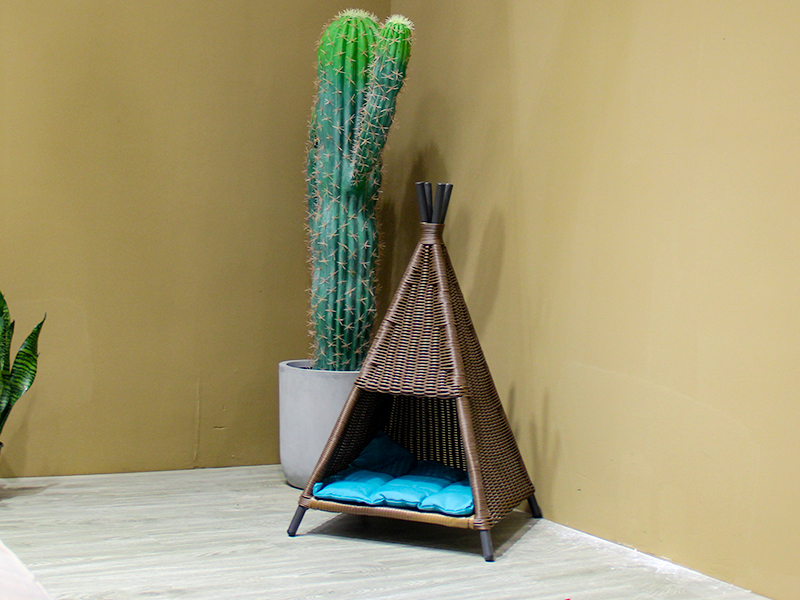 特点: 名称 宠物窝 型号 F-J2102 材质 全铝架+PE藤 尺寸 500*500*750mm 适用场所 花园、阳台、客厅、庭院、别墅等