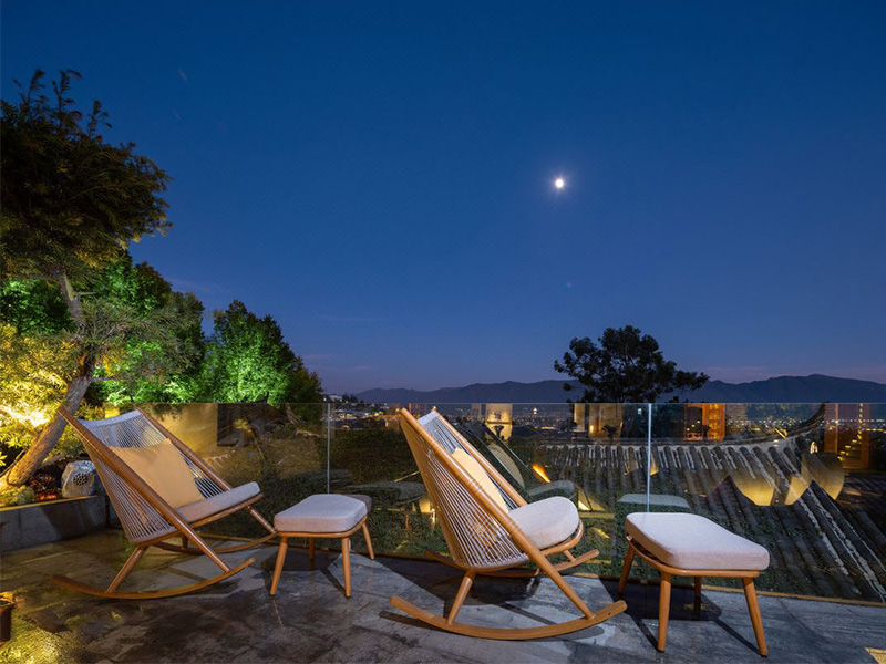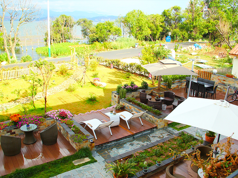 显然,没有花园的落地别墅和大型露天装饰平台需要格外仔细。首先,你得搞清楚这个平台是干什么用的。如果是家人和朋友聚会的地方,那么你就可以放上一个圆形餐桌,再配上四把椅子,然后在上面撑起一把遮阳伞,平台的四周可以点缀上高一些的热带绿植,或者你可以放置一个简单的烤箱和一个公共烧烤的长桌,但是如果平台是你的休闲观景平台,你只需要一张户外摇椅和一个小咖啡桌就够了。