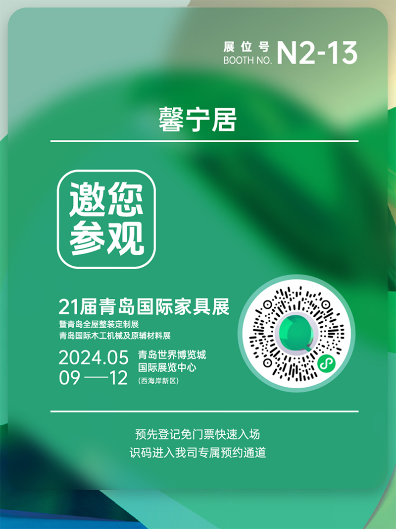 5月9-12日,2024第21届青岛国际家具展,馨宁居休闲家具(N2-13)受邀携手全国千余家优秀家具和产业链品牌,亮相青岛世界博览城国际展览中心。馨宁居致力与高端渠道商、装饰公司和设计师形成紧密联动,齐心协力推动行业高质量发展和引领高端家居消费。