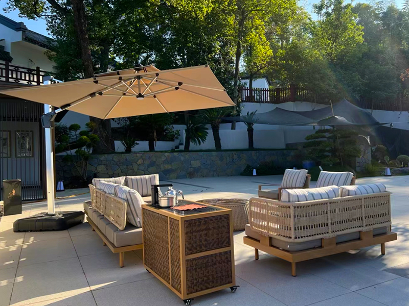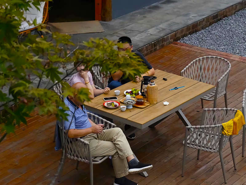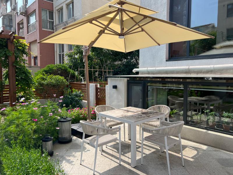 午后,藤椅、圆桌、一杯香茗,伴着花香,静享阅读时光,或是与家人闲坐聊天,孩子在一旁嬉笑玩耍,温馨四溢。