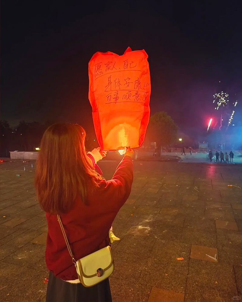 如果条件允许,可以在庭院中放飞许愿灯,写下新年的愿望,祈求平安和幸福。