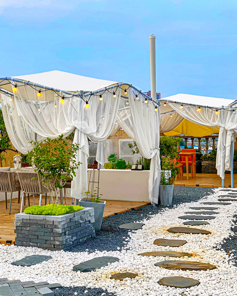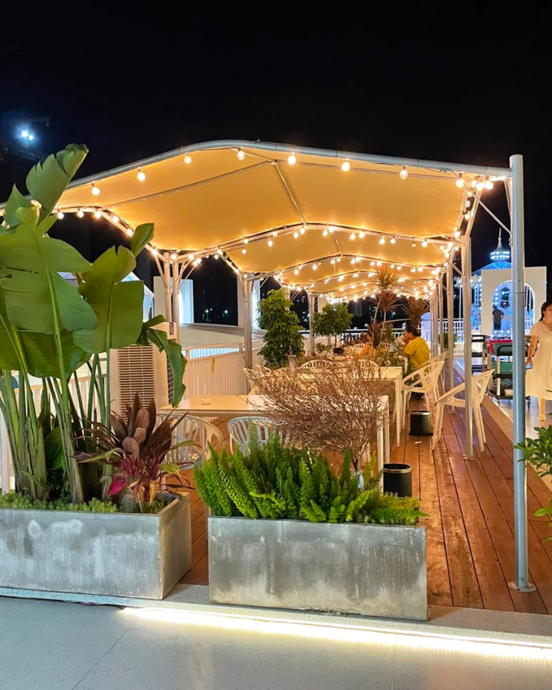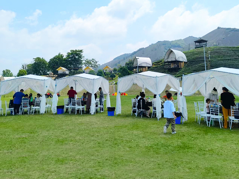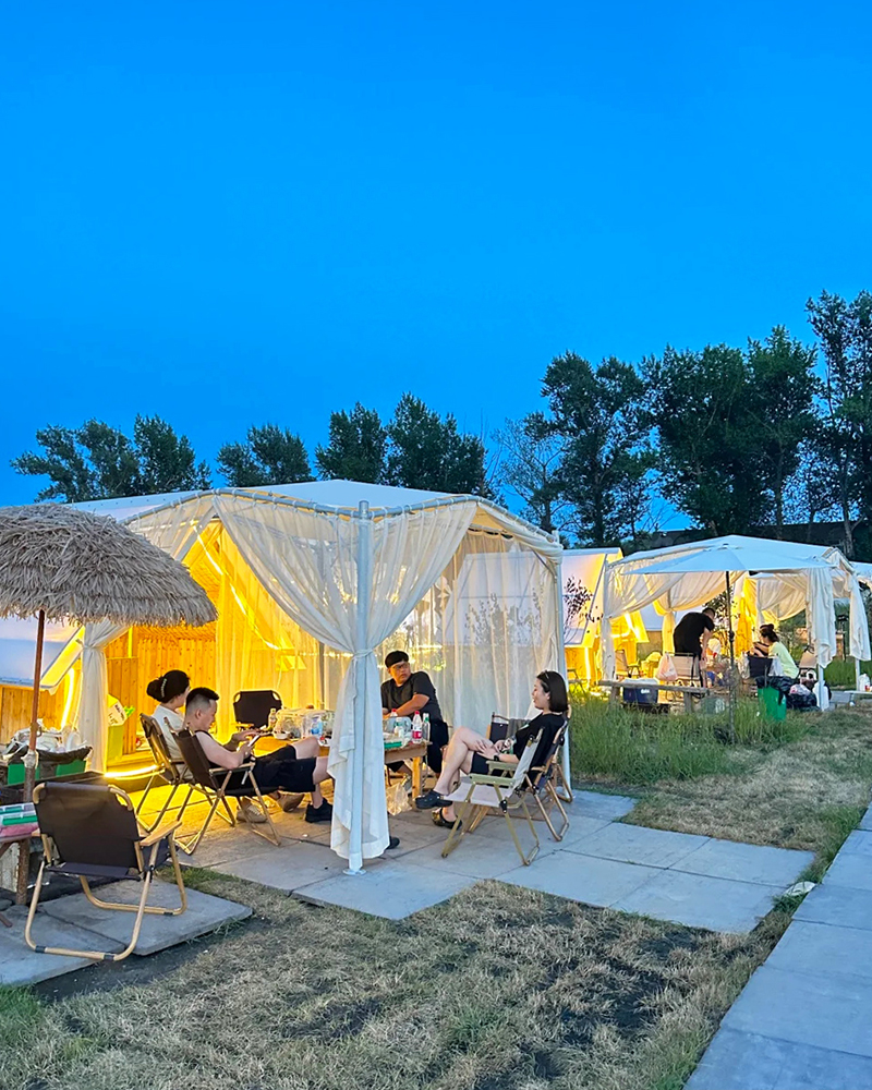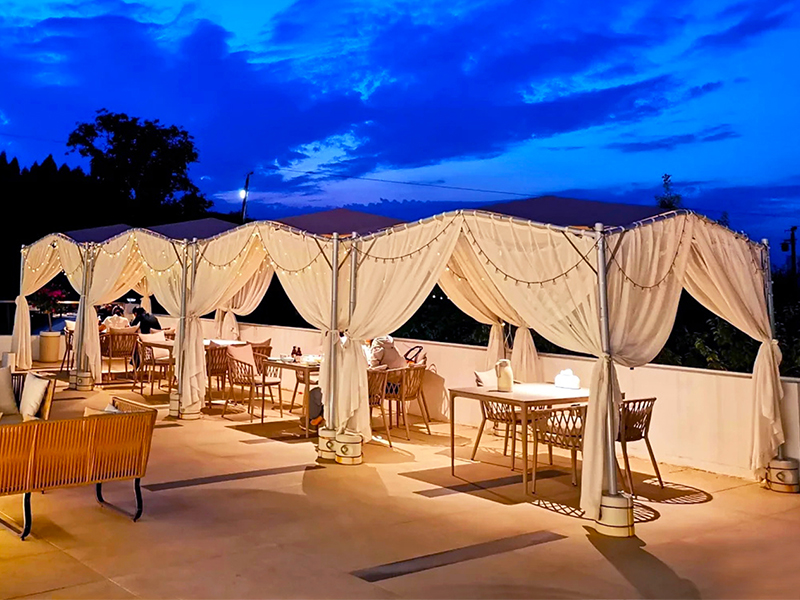 2,灵活通风与空间适配:放式结构搭配可拆卸顶棚,确保空气流通不闷热;12㎡超大空间可容纳多人聚会,搭配风扇或绿植,瞬间提升清凉感。立柱采用直径58mm钢管支撑,稳固抗风,适合景区、餐饮、营地、民宿、乐园、停车棚等多种场景。