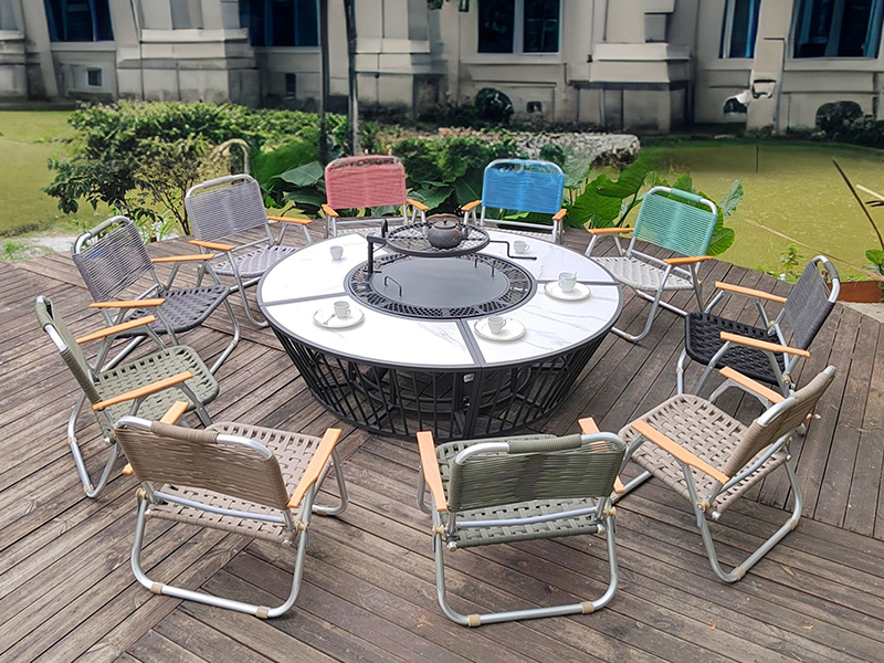 超大多功能烧烤桌,烧烤、铁锅炖、围炉煮茶。家人围坐翻转肉串,岩板台面耐高温易清洁,火星溅落也不留痕。炊烟起时,庭院秒变米其林露天厨房。