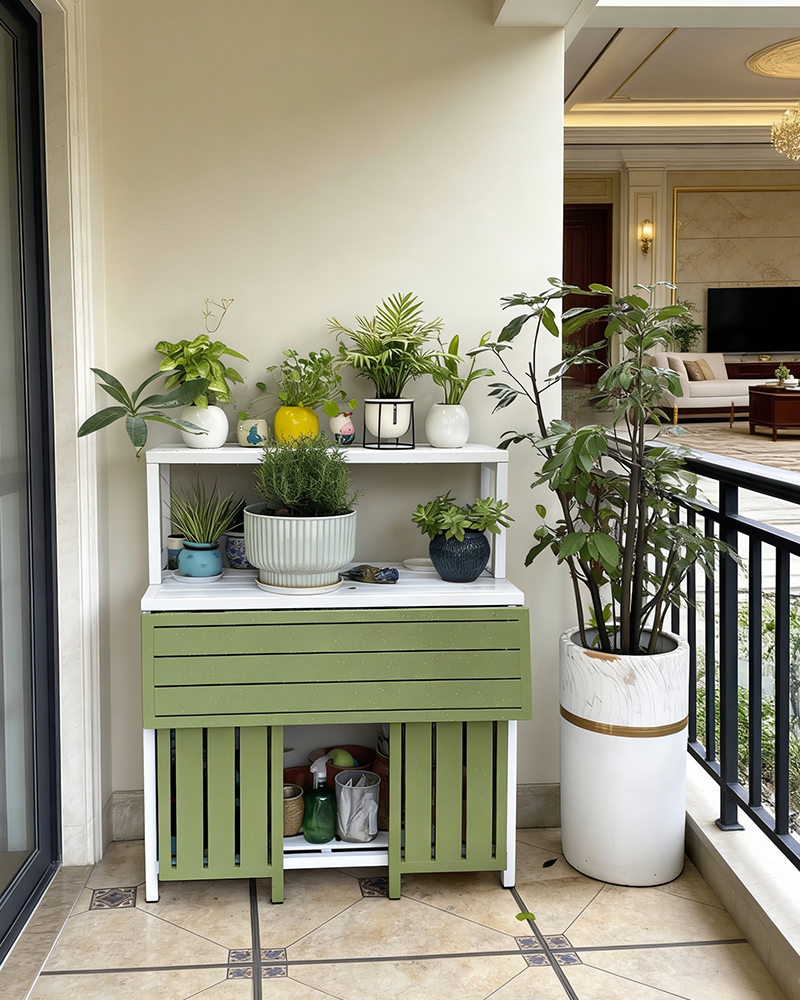 无需精心打理,选择散尾葵、虎皮兰、多肉等低维护植物,搭配阶梯式多功能花架,瞬间打造立体绿意。