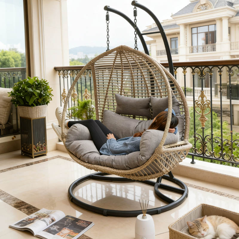 摆上钟爱的双人吊篮,摆放几本翻旧的书,或是一个香薰机。这些微小细节,才是“治愈角”的灵魂。