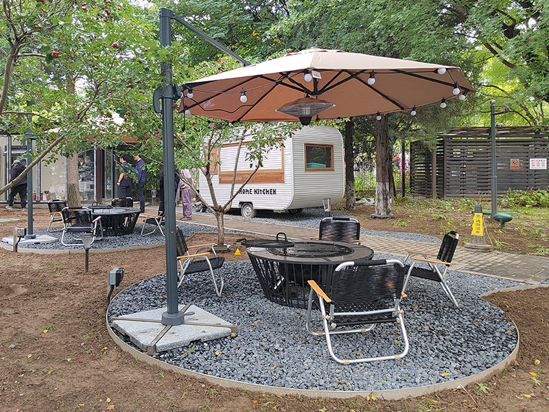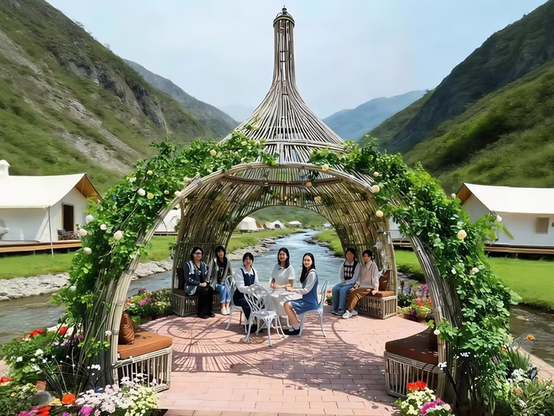溪水叮咚作伴,在木台支起炭炉,任炭火滋啦声混着肉串在铁网上冒油,野菜串染上焦香,山风裹着树木气息拂过,举一杯酒亲友对饮,置身自然与烟火的双重诗意。